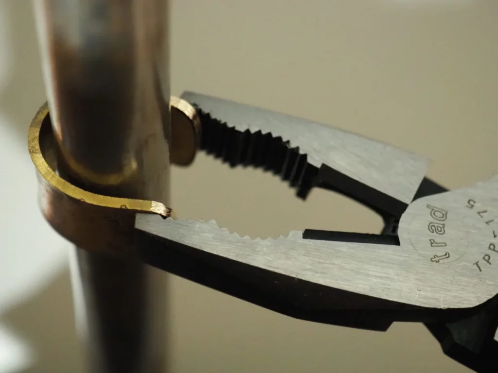 ペンチなどでグッと絞るのも効果的です。(掴んだ傷がついてしまいますので、後でヤスリで消す手間が発生します。)