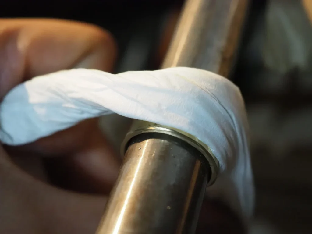 内側は丸い棒に巻いた耐水ペーパーで綺麗にします。鉛筆などが良いかもしれません。