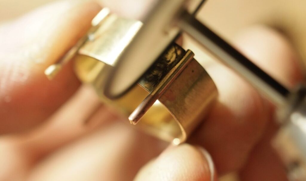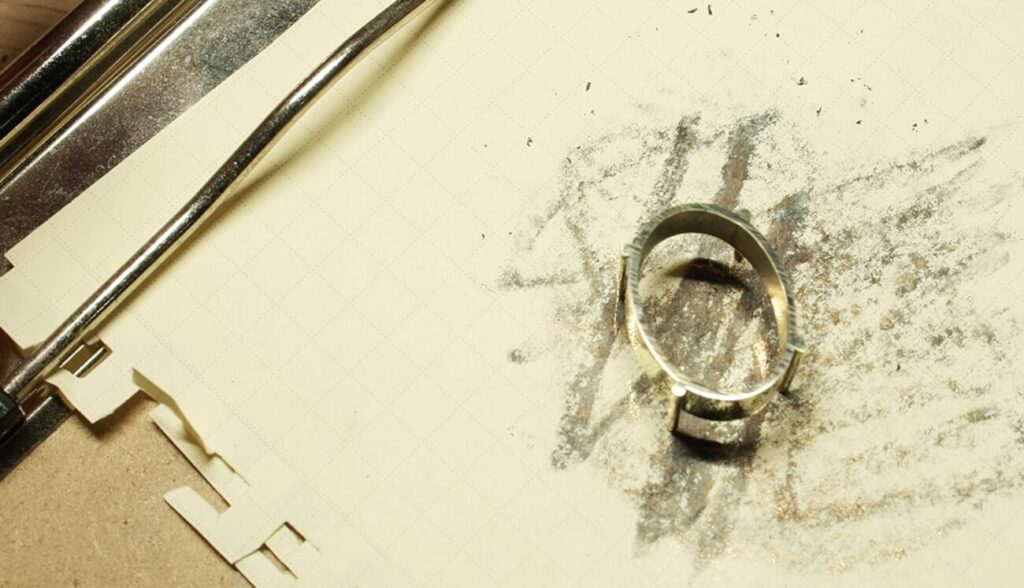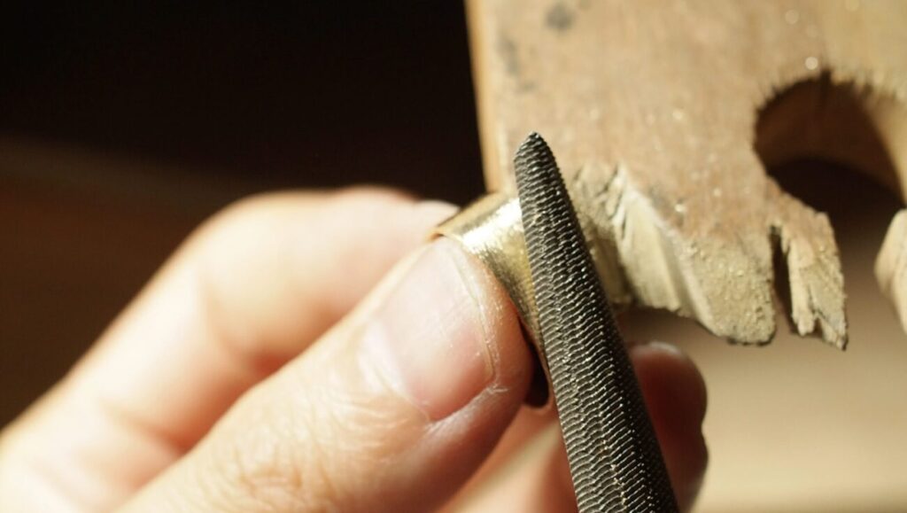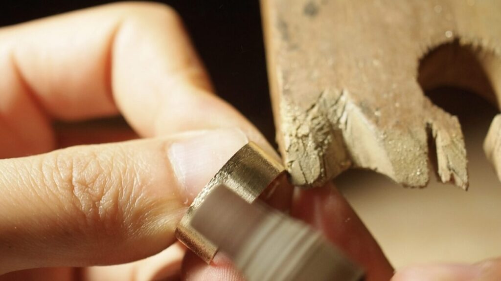 ロウ付けをする作品の場合は、ロウ付け前にStep.1のペーパーがけまで終わらせておきましょう。(ロウ付けしたパーツの出っ張りが邪魔になって隅々まで綺麗にすることができなくなってしまうためです。)