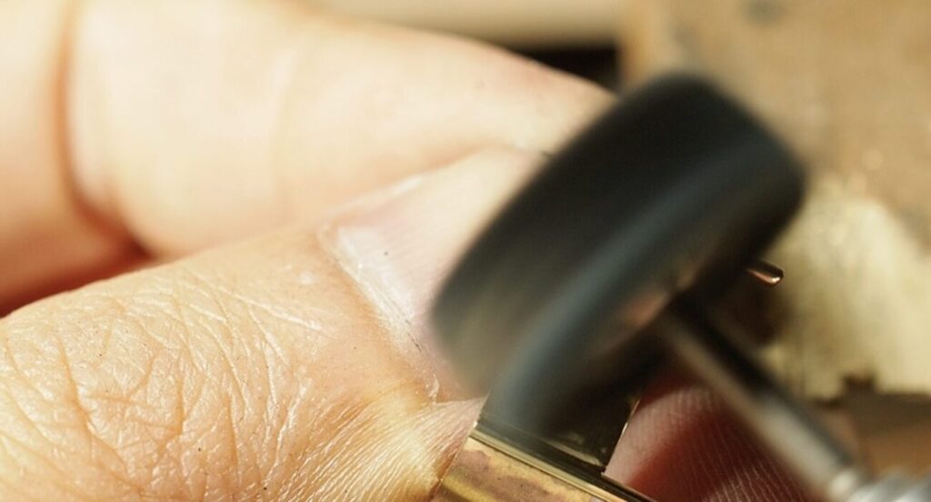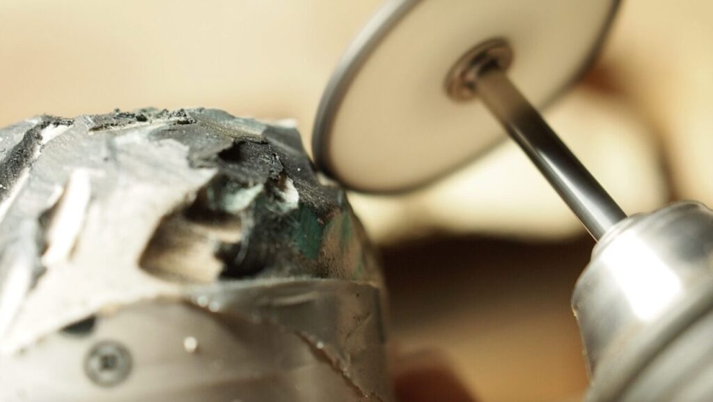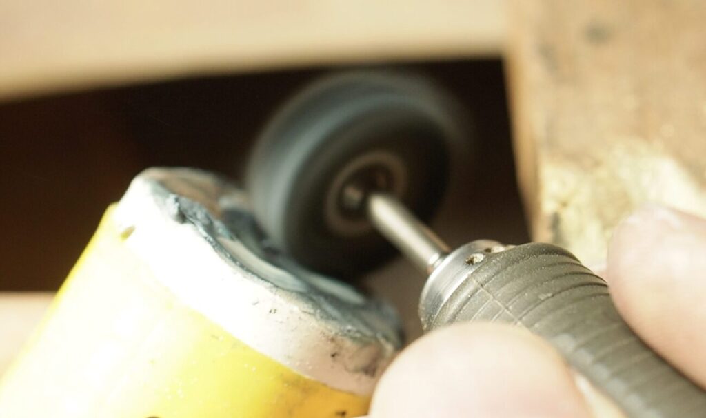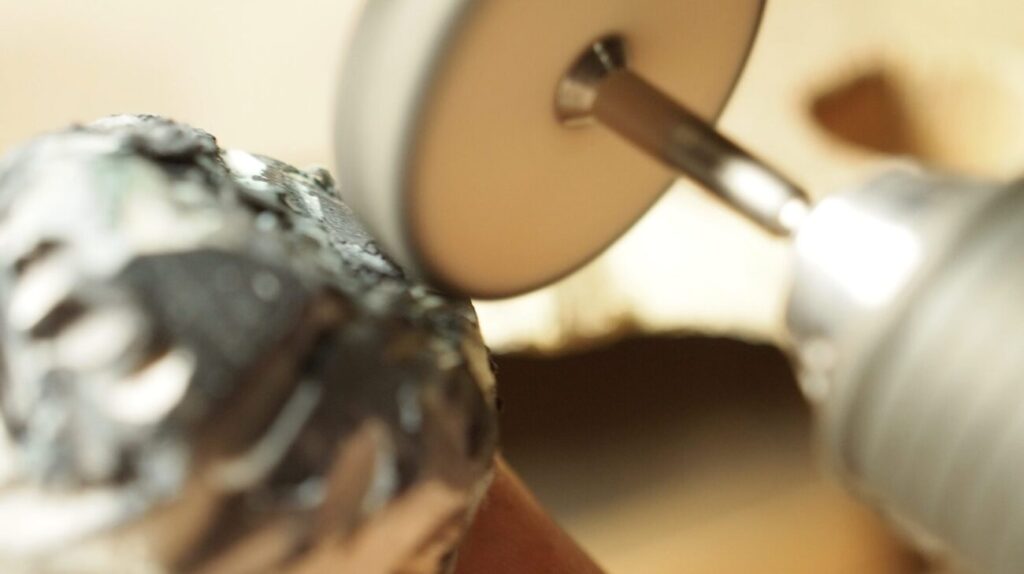 シリコンポイントをリューターに取り付けて綺麗にしていきます。
