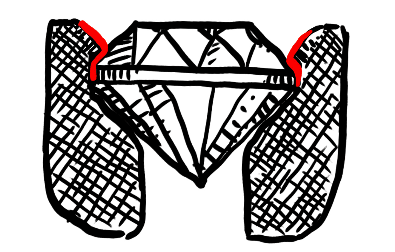 腕を文字のモチーフの長さに合わせてカット