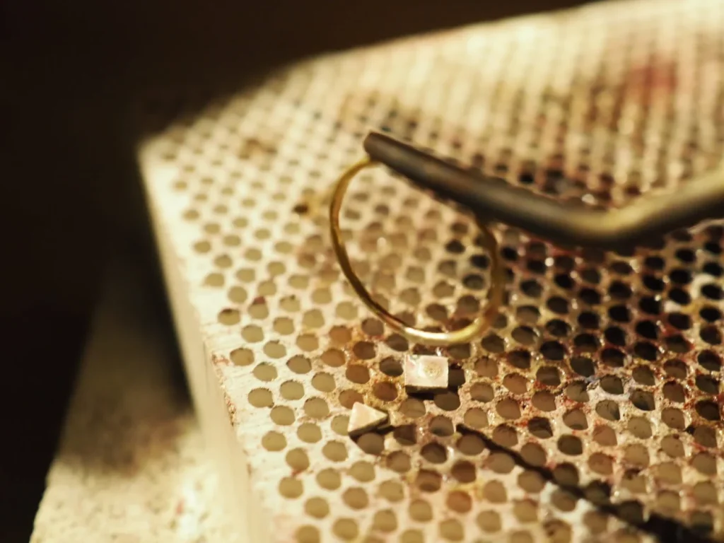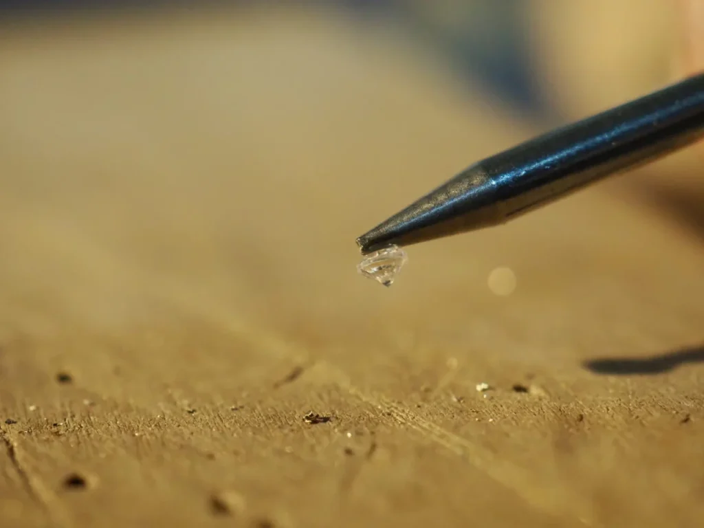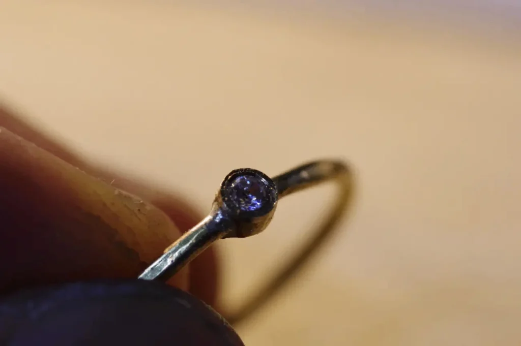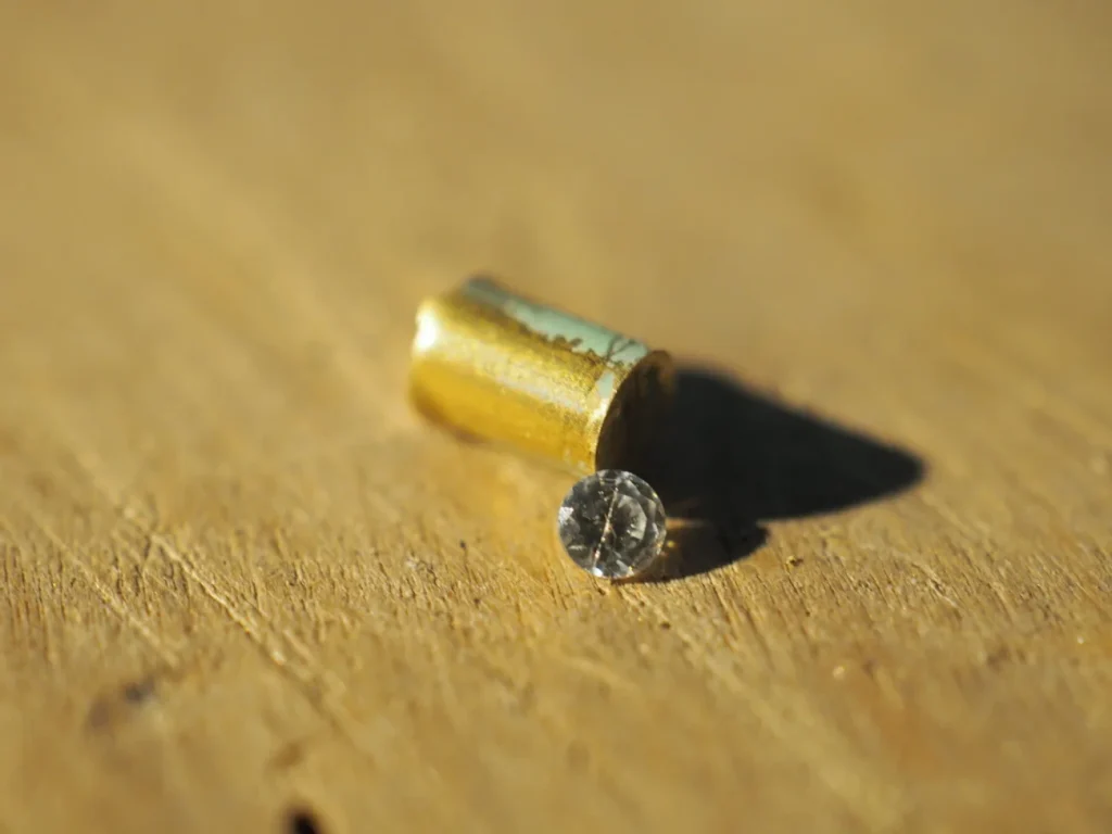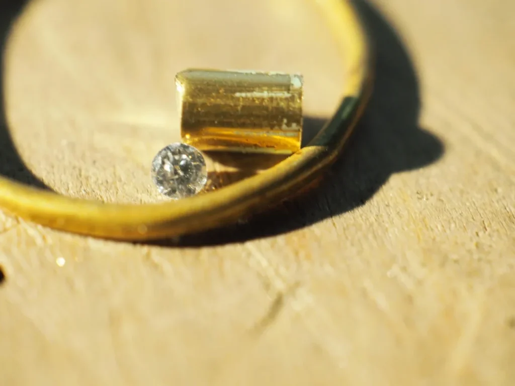 ダイヤモンドなどの場合はギリギリまで受け皿を削って、光が入り込むようにします。