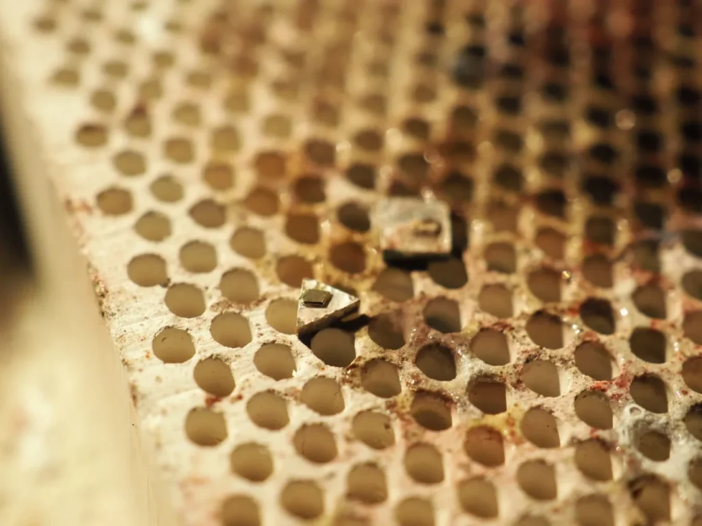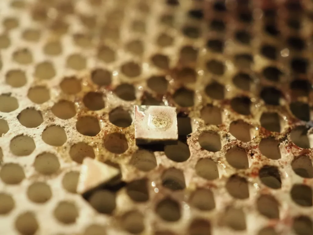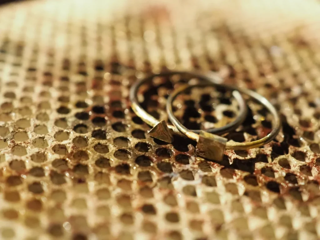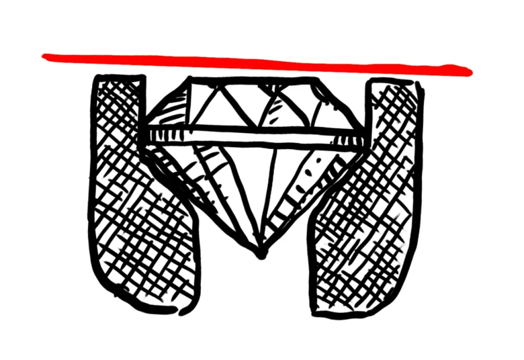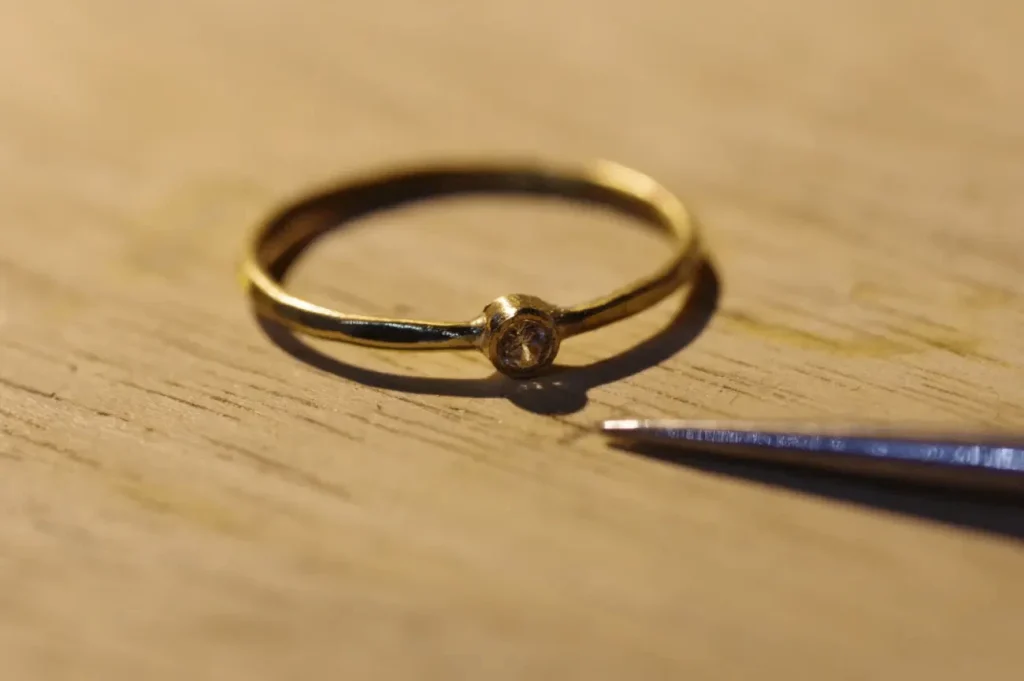 ダイヤモンドなどの場合はギリギリまで受け皿を削って、光が入り込むようにします。