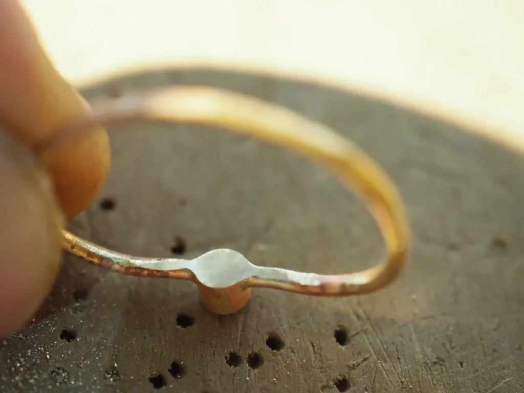 • プレートをロウ付けした真鍮とシルバーのリングの作り方