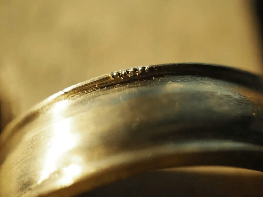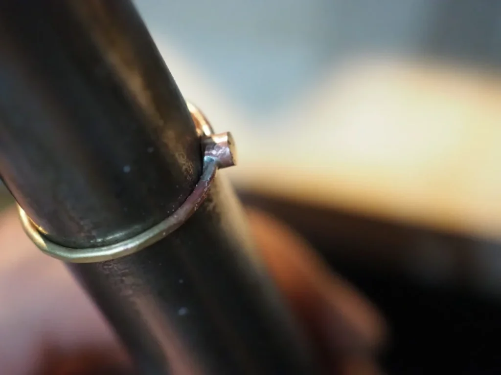 リングのロウ付けした部分をプレートとリングの接点に持ってくる事で、余計なロウ目が目立たないようになります。