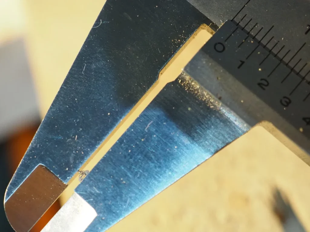 リングと文字のモチーフがピッタリになるように削ります。ノギスがあると便利です。