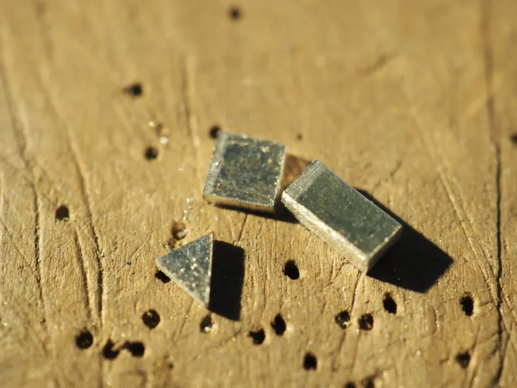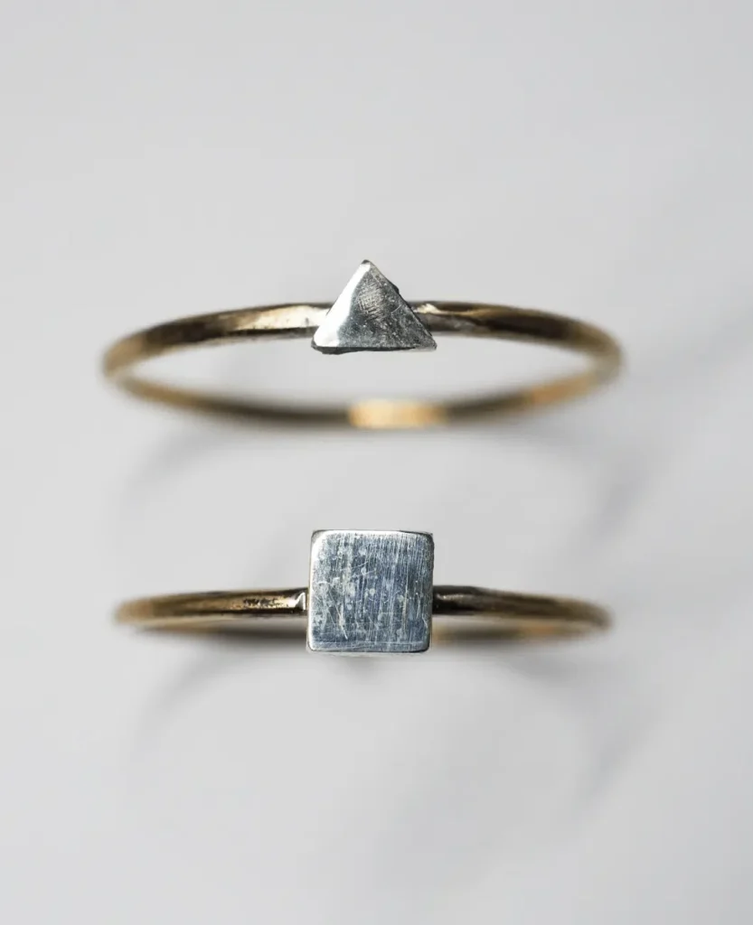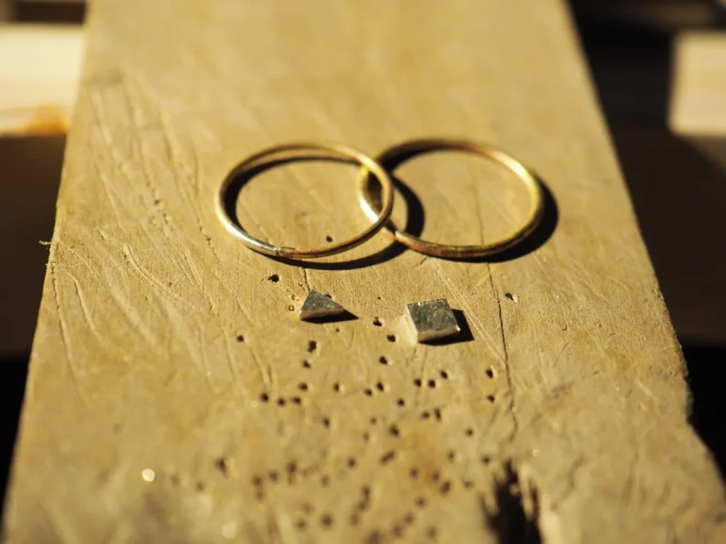 以前にリングを作った時の端材があったので、ニッパーで切断後、ヤスリで三角や四角に整えました。