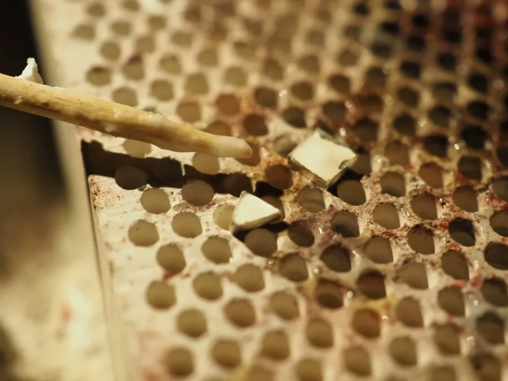 ここが一番の難所です!(気を抜くと全部ロウが溶けてバラバラになってしまう。)