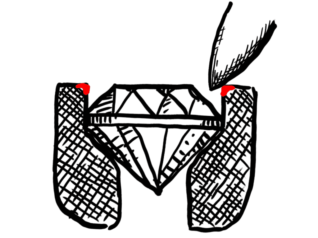これはただの四角い穴ですが、ハイジュエリーなどはここに模様の透かしを入れたり、文字の形に切り抜いたりと、遊び心を表現する粋なポイントでもあります。