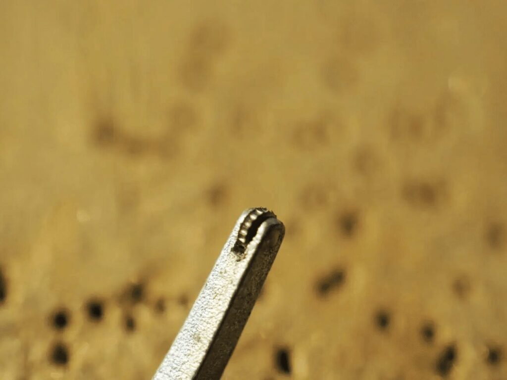 小さくて持ちづらいですが、ヤットコやペンチで持ちながらやると良いです。