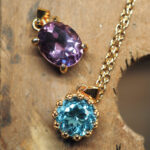 石留め,空枠にアメジストを石留めする,印をつける