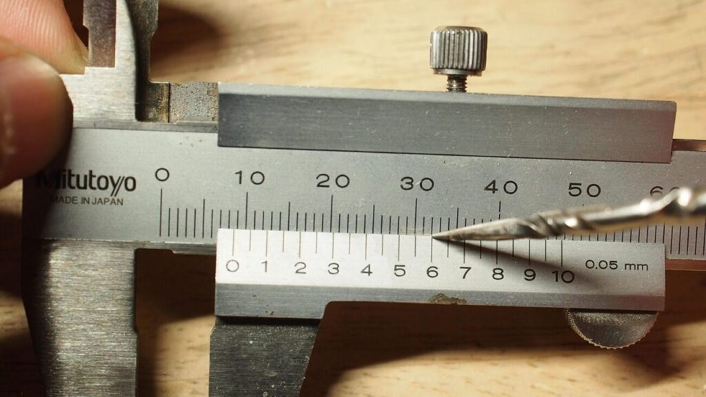 ミニノギス・マメノギスみたいなものもありますが、’05単位の視認性が悪く、デジタルノギスで測り直すと少し誤差が目立ちます。